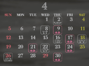 4月のカレンダー更新しました!